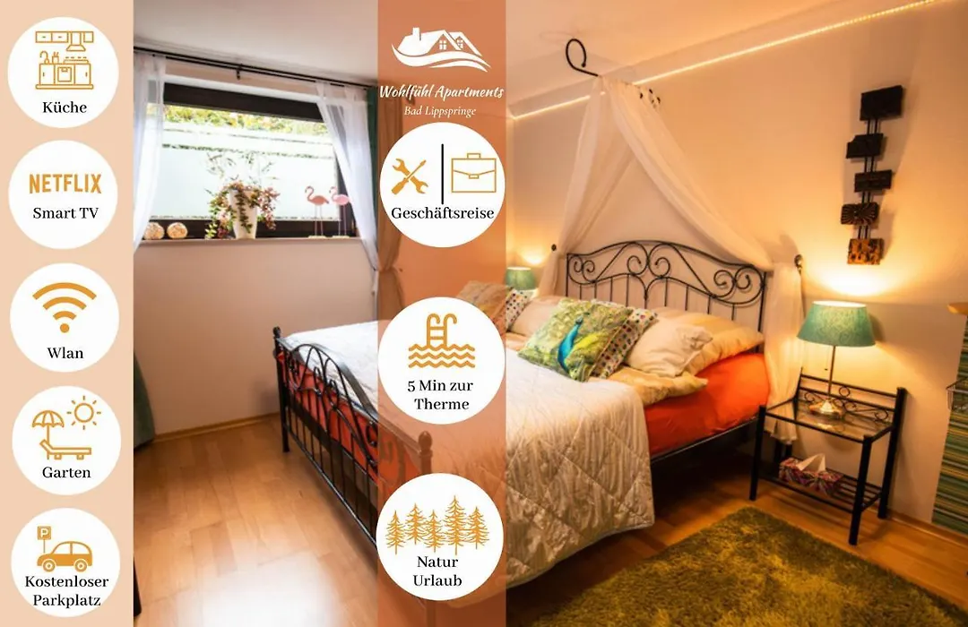 Diese charmante Ferienwohnung befindet sich in idealer Lage im Zentrum von Bad Lippspringe. Die Wohnung ist geschmackvoll eingerichtet und bietet Ihnen allen Komfort, den Sie benötigen. Von hier aus erreichen Sie bequem Restaurants, Geschäfte und den Kurpark.